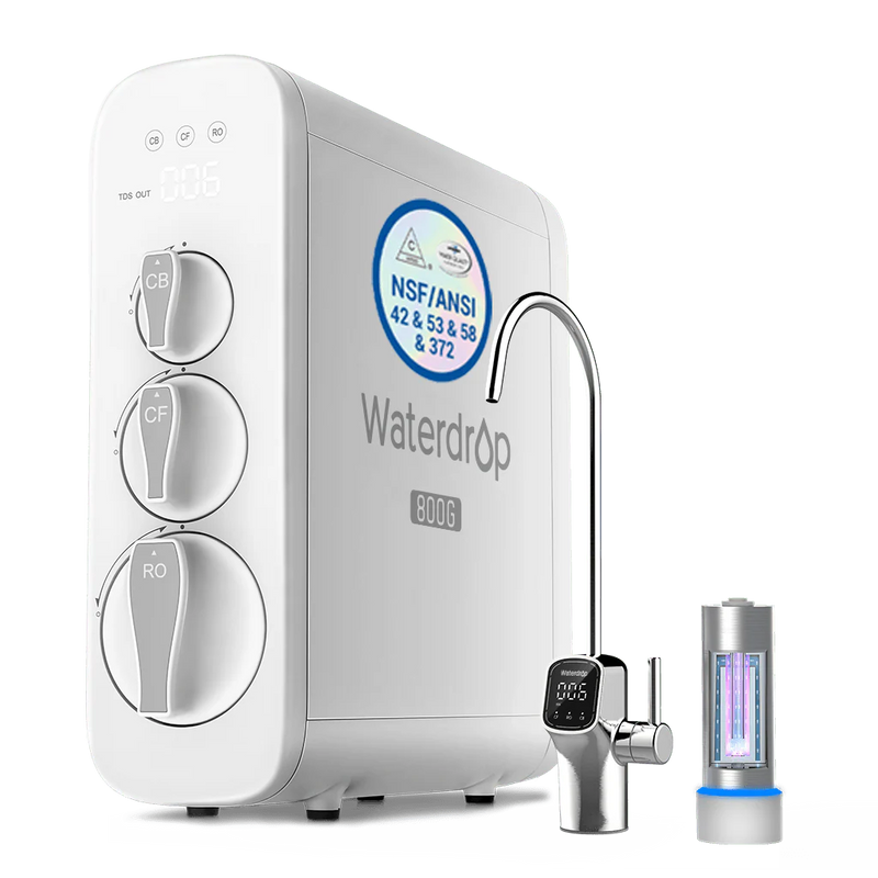 We evaluated dozens of manufacturers. Waterdrop won due to superior technology (no bacterial growth, no wasted cabinet space), high flow rates (600-1600 GPD vs. 50-75 GPD for traditional systems), low waste (2:1 ratio vs. 3-5:1 for competitors), smart design (TDS monitoring, filter alerts, tool-free replacements), NSF certification, and real warranties. We like the 800 GPD Series.